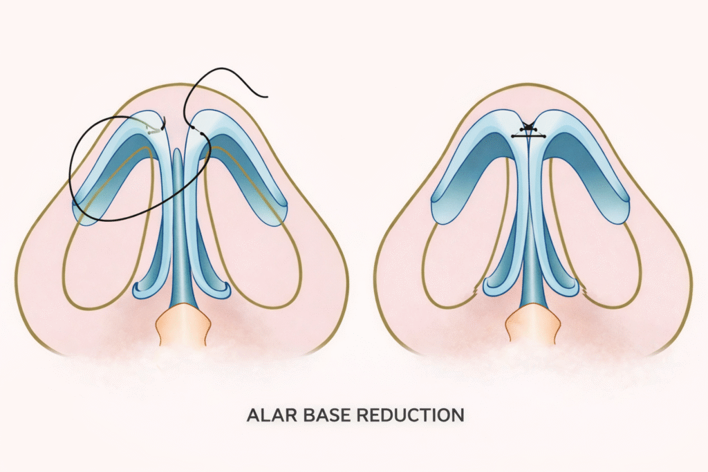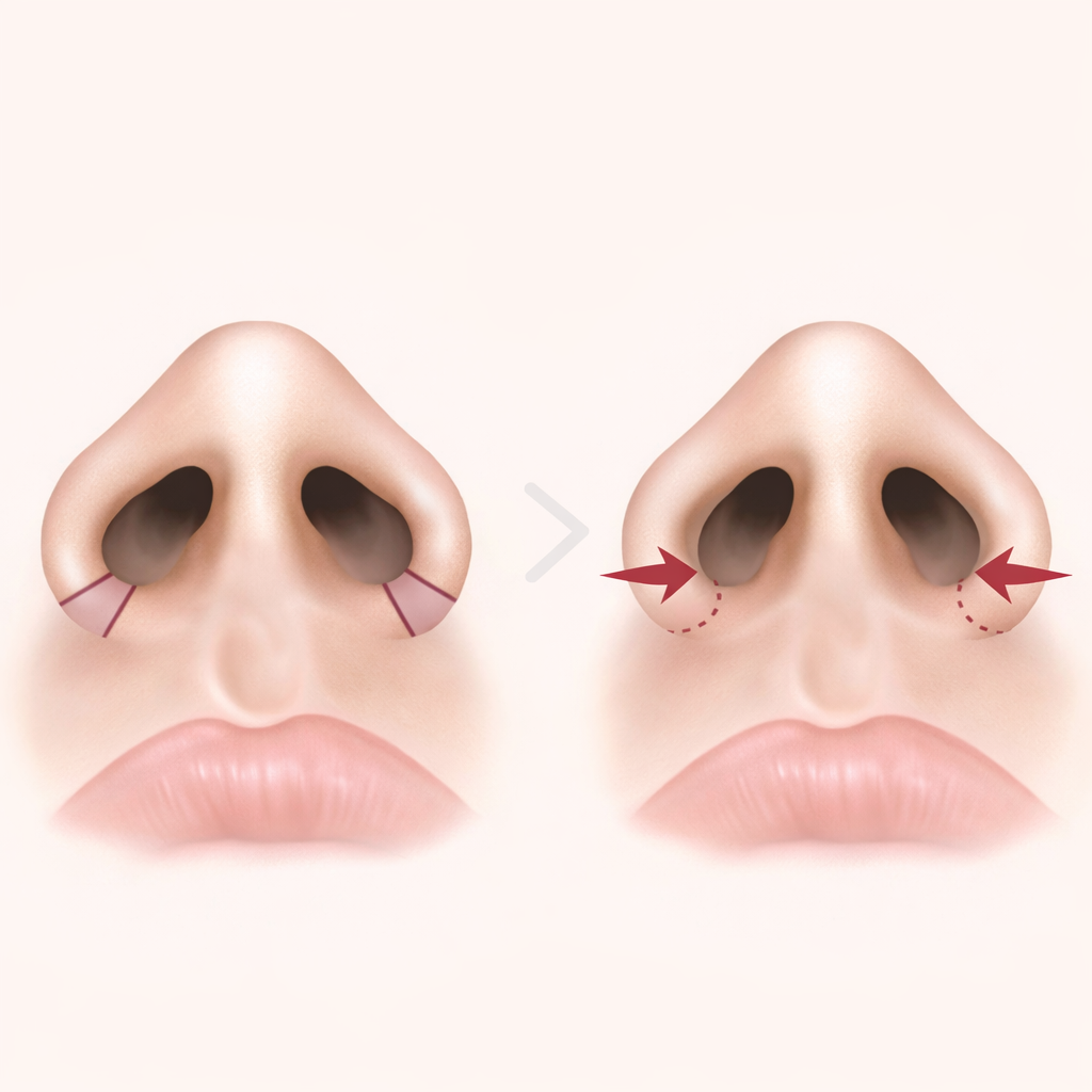 This surgery narrows wide nostrils by removing small wedges of tissue. It helps make the nose base look slimmer and more proportionate with the face.