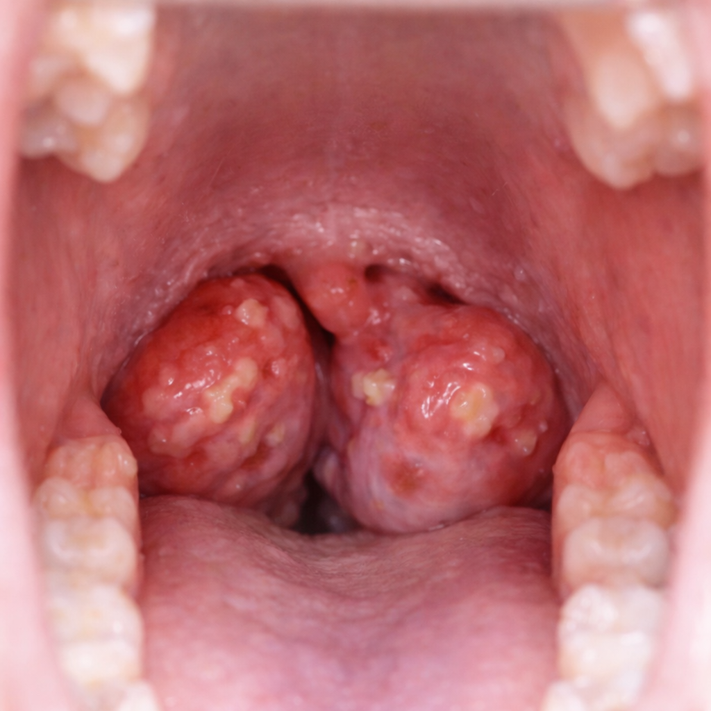 Large tonsils can obstruct the airway, especially during sleep. Warning signs include: